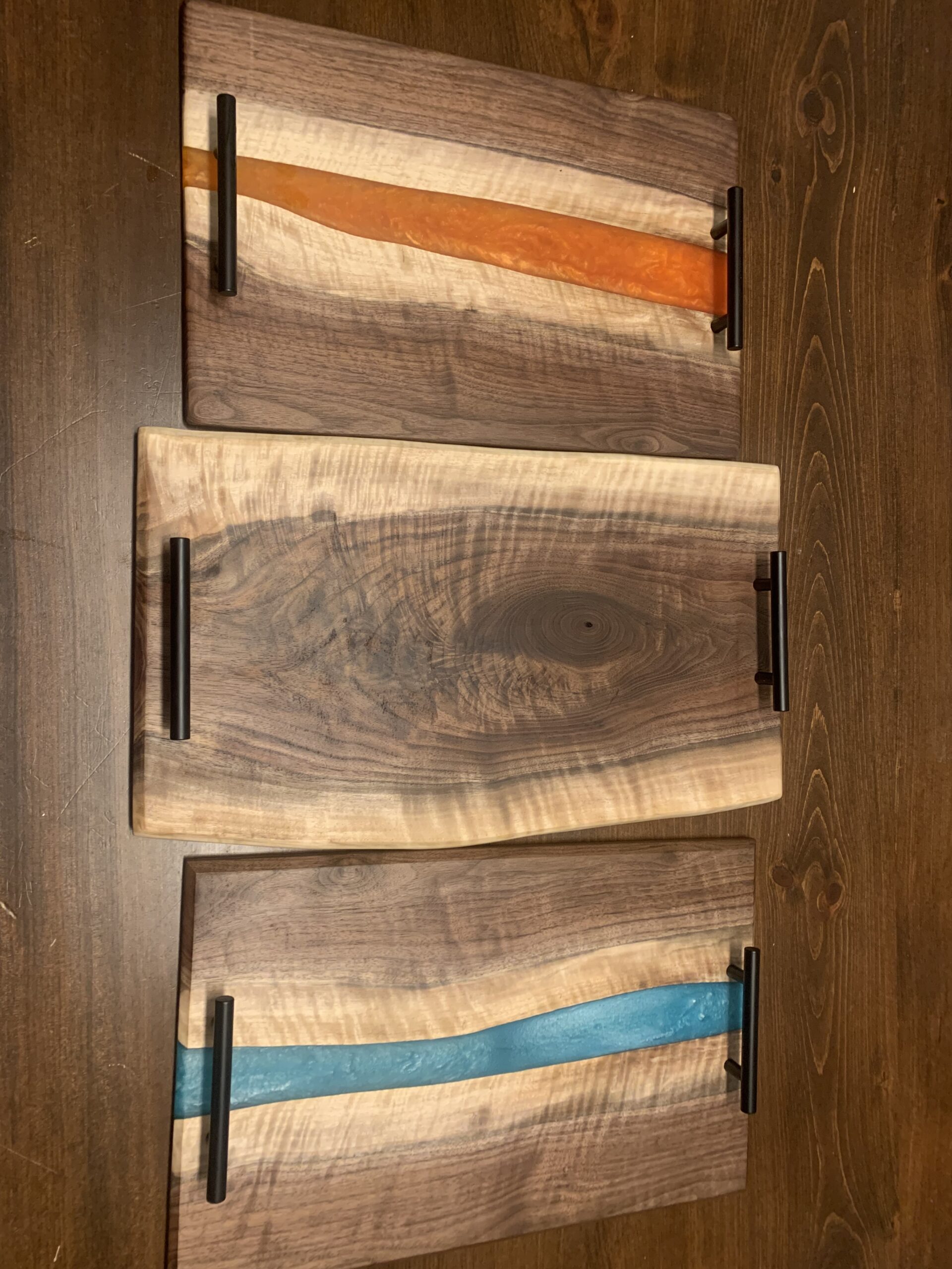 custom black walnut and epoxy charcuterie board. VALUE 200