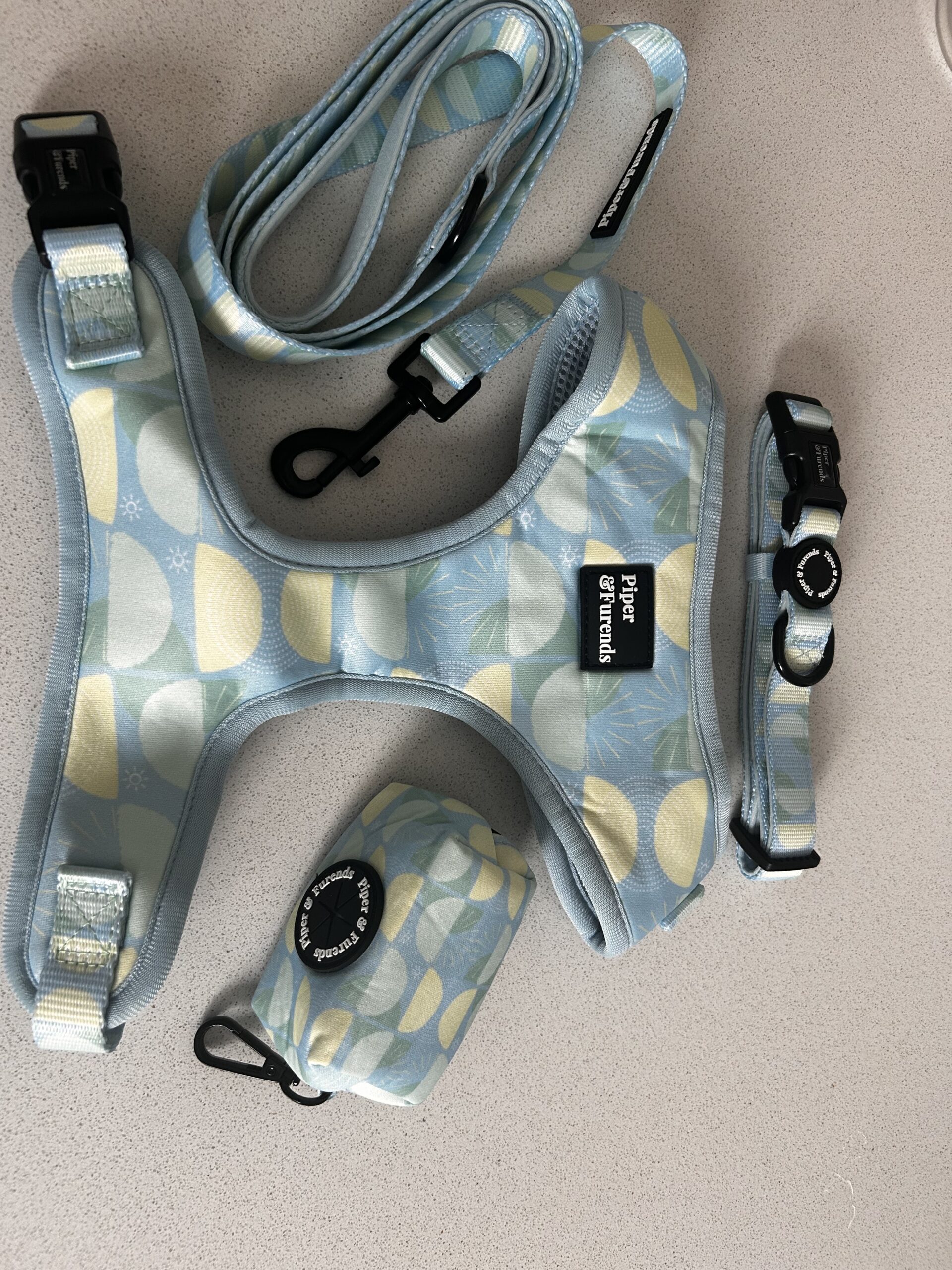 $75 (harness, 5ft leash, collar and poop bag pouch)
