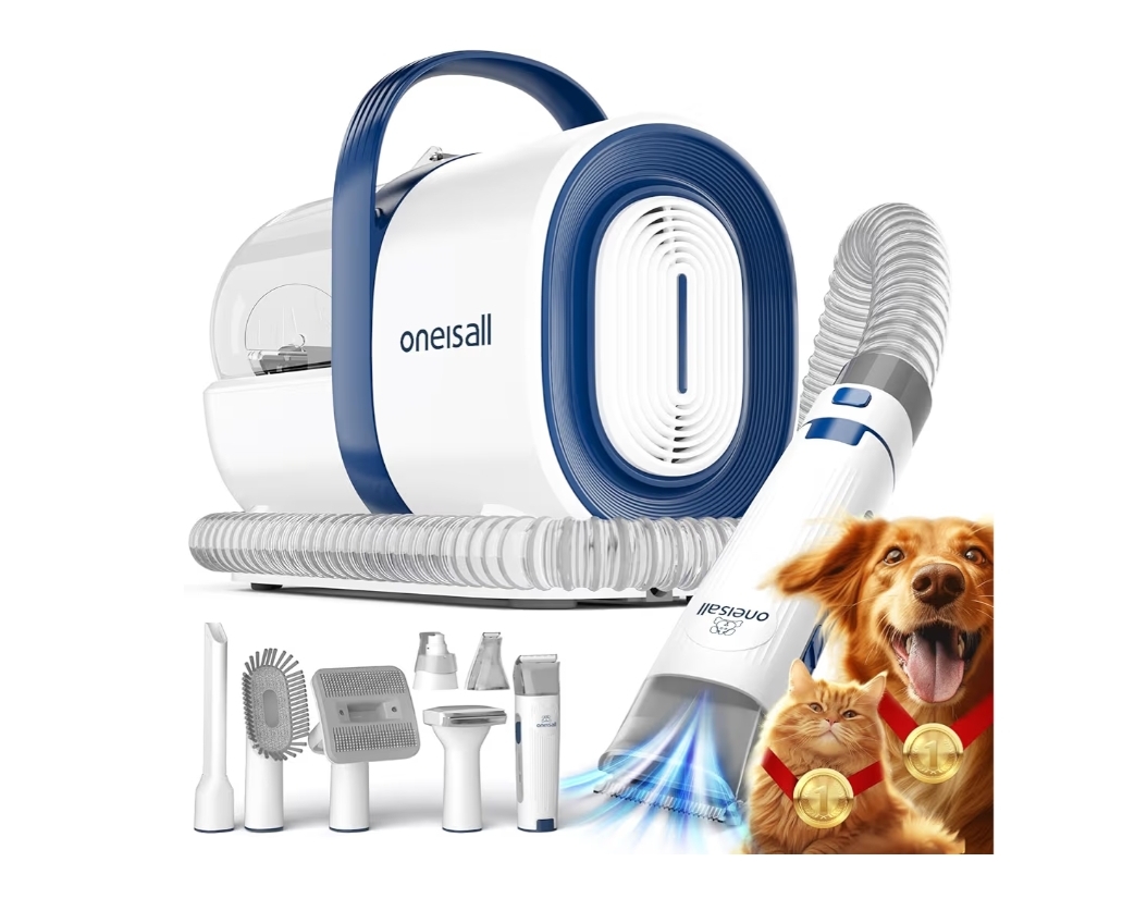 oneisall Dog Grooming Kit, Dog Grooming Clippers, Professional Pet Grooming Vacuum with 7 Pet Grooming Tools for Shedding Thick & Thin Dogs Cats Pet Hair DONATED BY VICKY