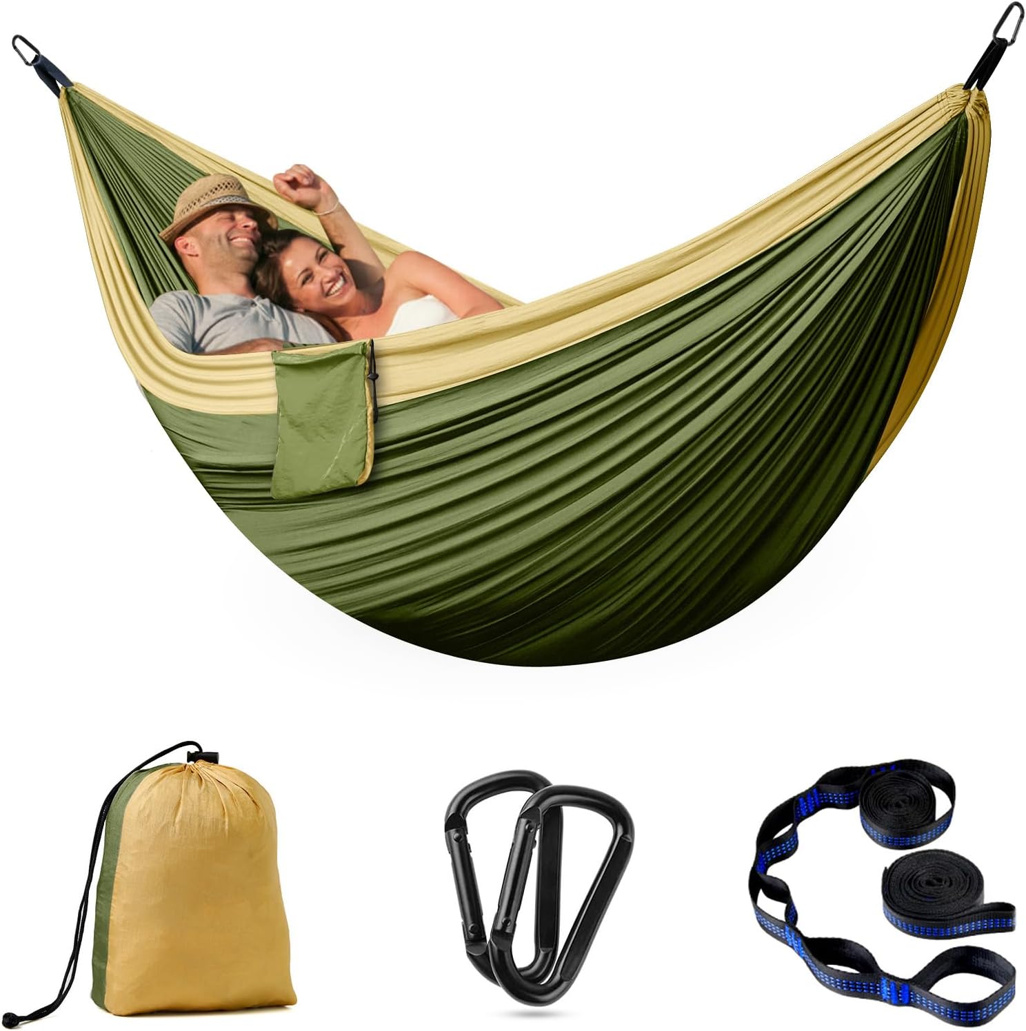 Camping Hammock – Single&Double Lightweigtht Nylon Hammocks with Tree Straps, 2 Person Portable Hammock Swing for Outdoors, Backpacking, Hiking, Travel, Garden, Breathable & Quick Drying Parachute